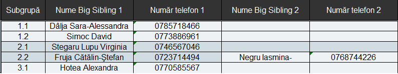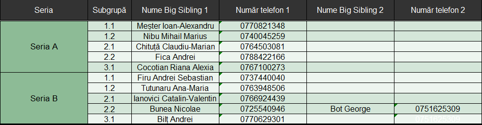 Mai jos găsiți tutorii studenți pentru fiecare subgrupă pe anul universitar 2024-2025: